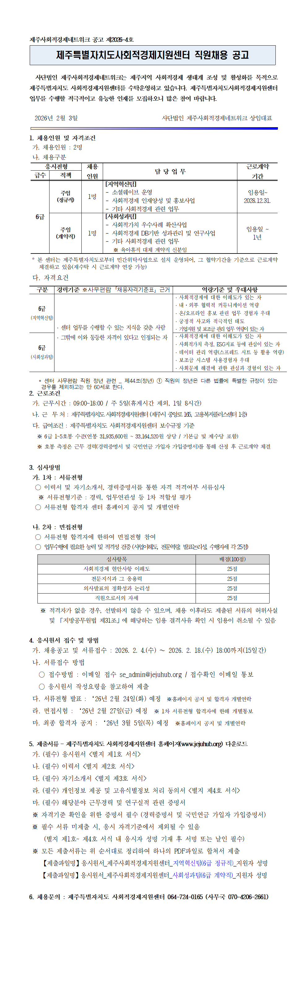 (공고문) 제주특별자치도사회적경제지원센터 직원채용 공고문(제2026-4호).pdf
