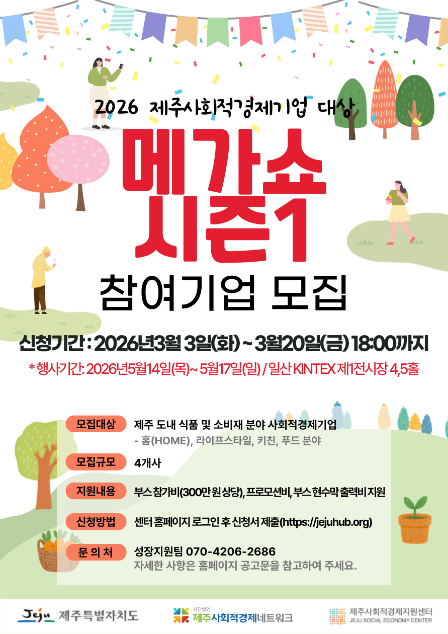2026 제주사회적경제기업 대상 메가쇼 시즌1 참가 지원 기업 모집 공고
