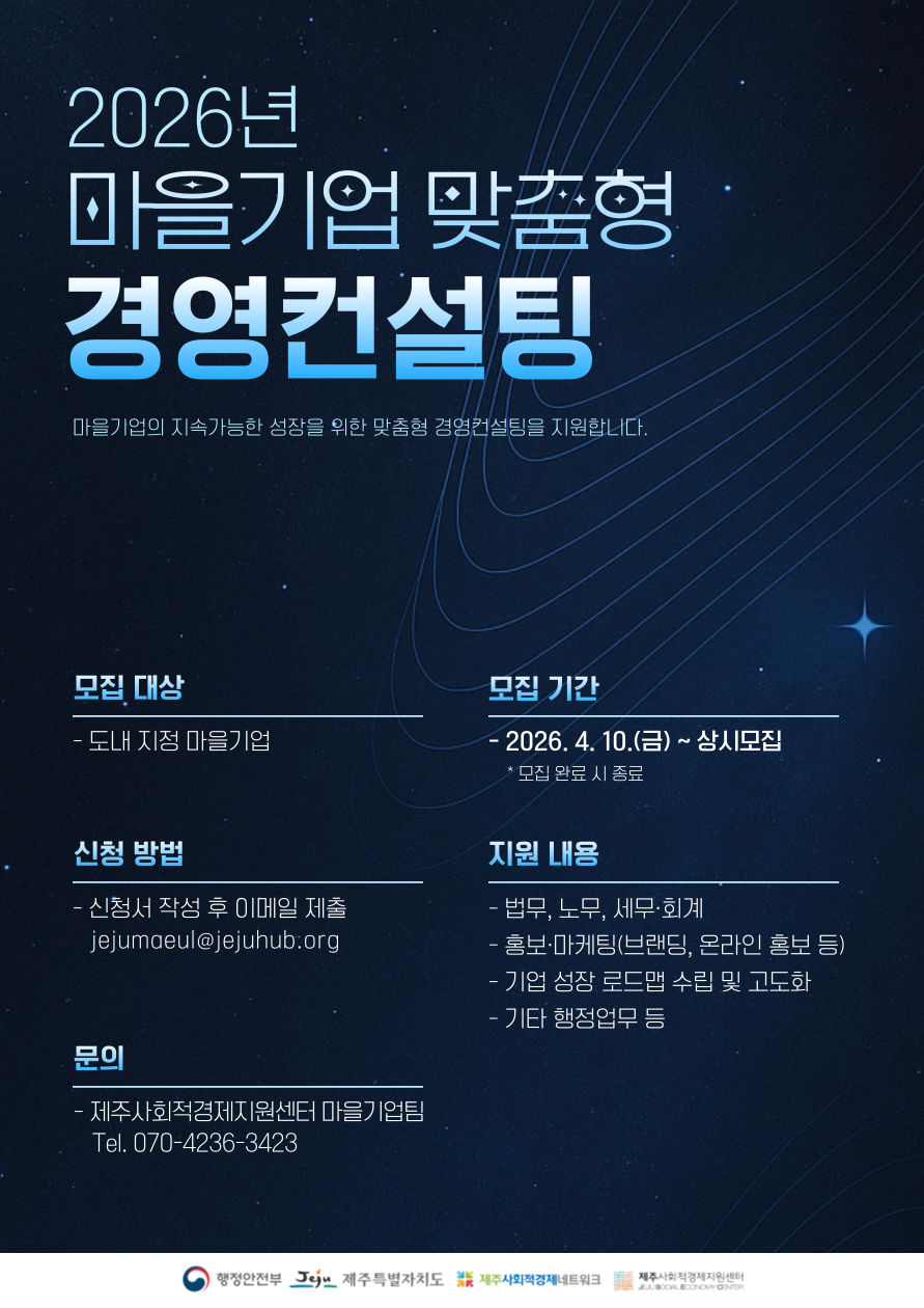 - 공고명: 2026년 마을기업 맞춤형 경영컨설팅