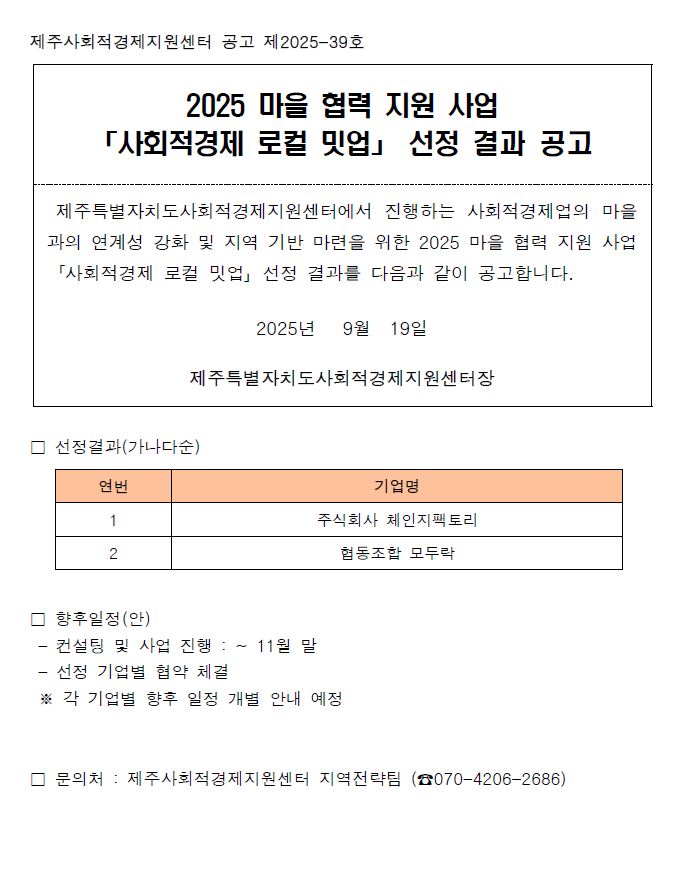 [선정결과] 2025 마을 협력 지원 사업「사회적경제 로컬 밋업」선정 결과 공고
