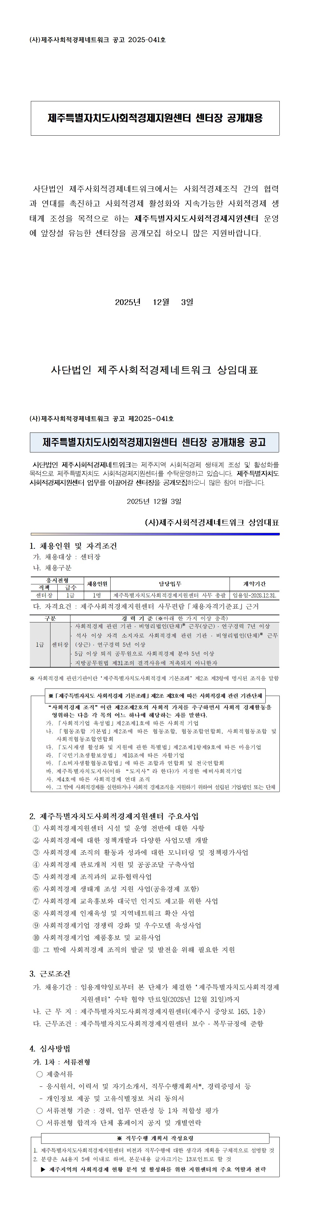 공고 2025-041호 제주특별자치도사회적경제지원센터 센터장 채용공고.pdf