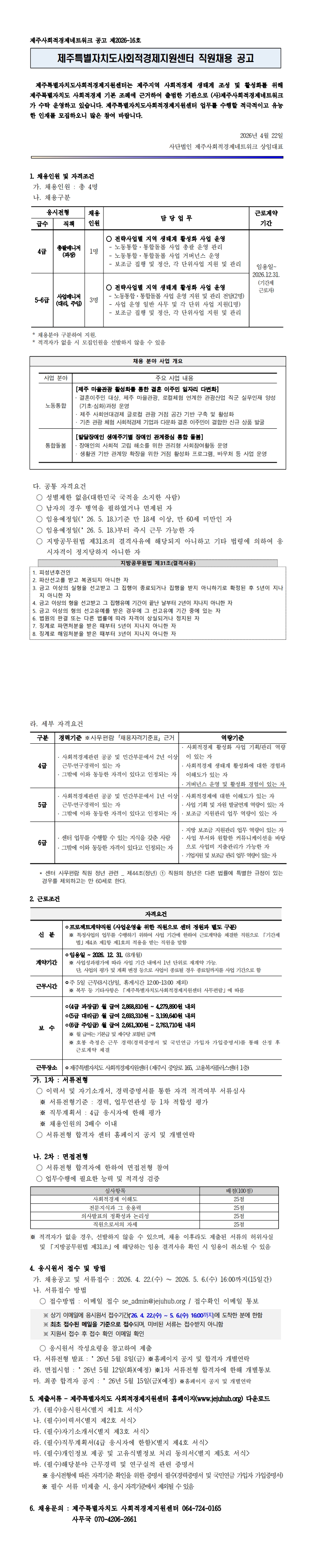 (공고문) 제주특별자치도사회적경제지원센터 직원채용 공고문(제2026-16호).pdf