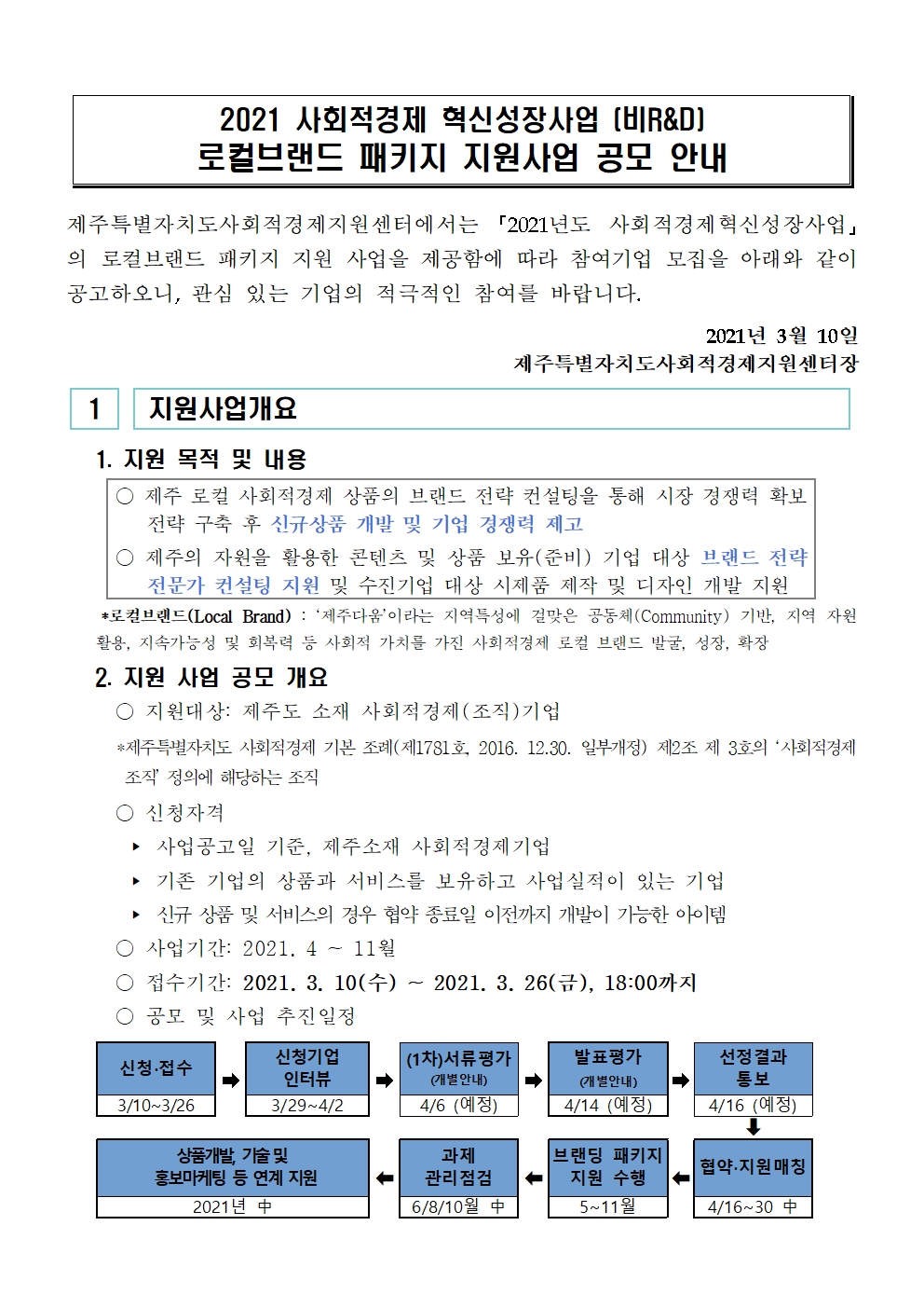 21년 제주사회적경제혁신성장사업 브랜드 패키지 지원사업 참여기업 모집 공고