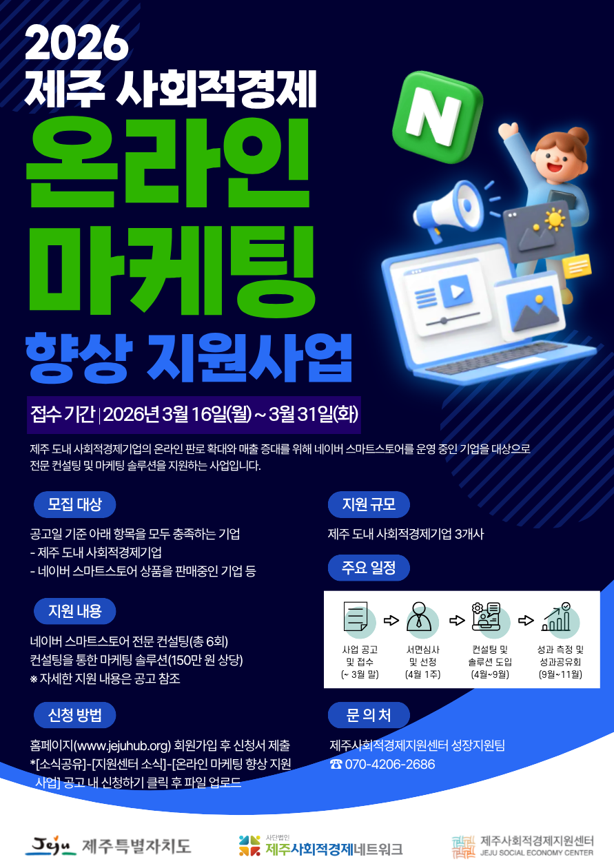 2026 제주 사회적경제 온라인 마케팅 향상 지원사업 참여 기업 모집 공고