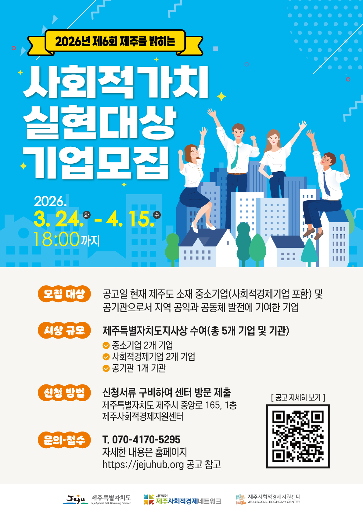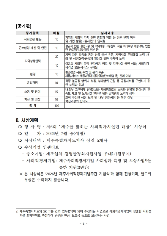 2026년 제6회 제주를 밝히는 사회적가치 실현 대상 기업 모집 공고