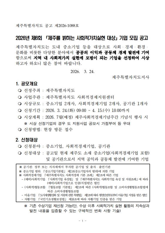 2026년 제6회 제주를 밝히는 사회적가치 실현 대상 기업 모집 공고문.pdf
